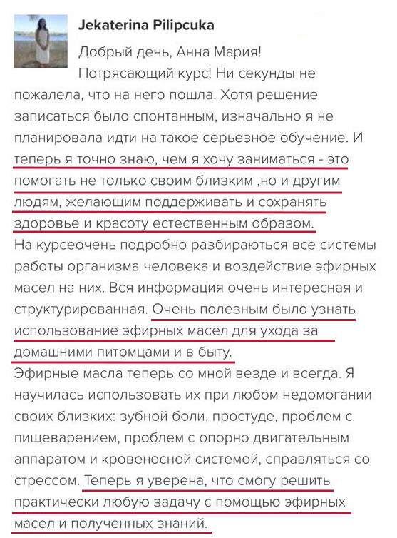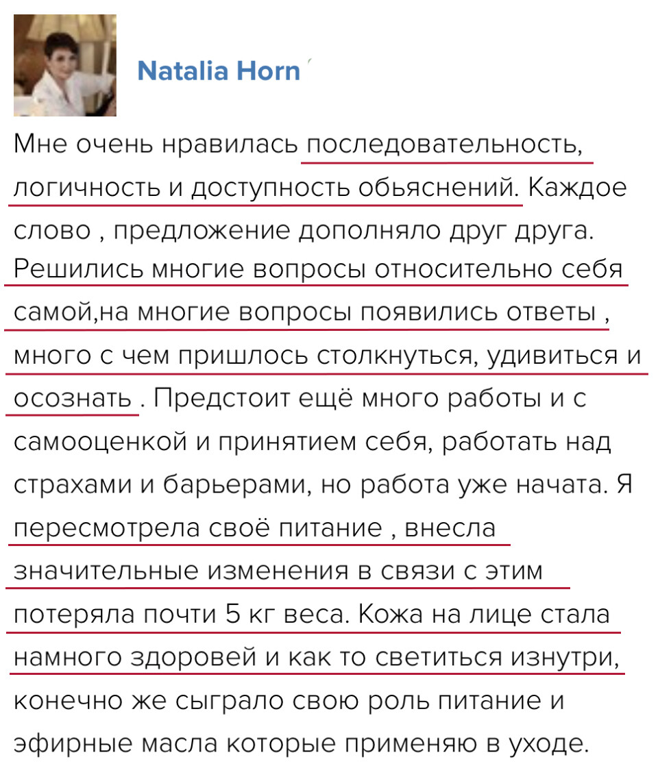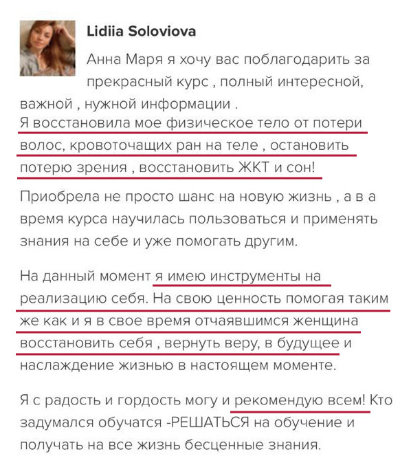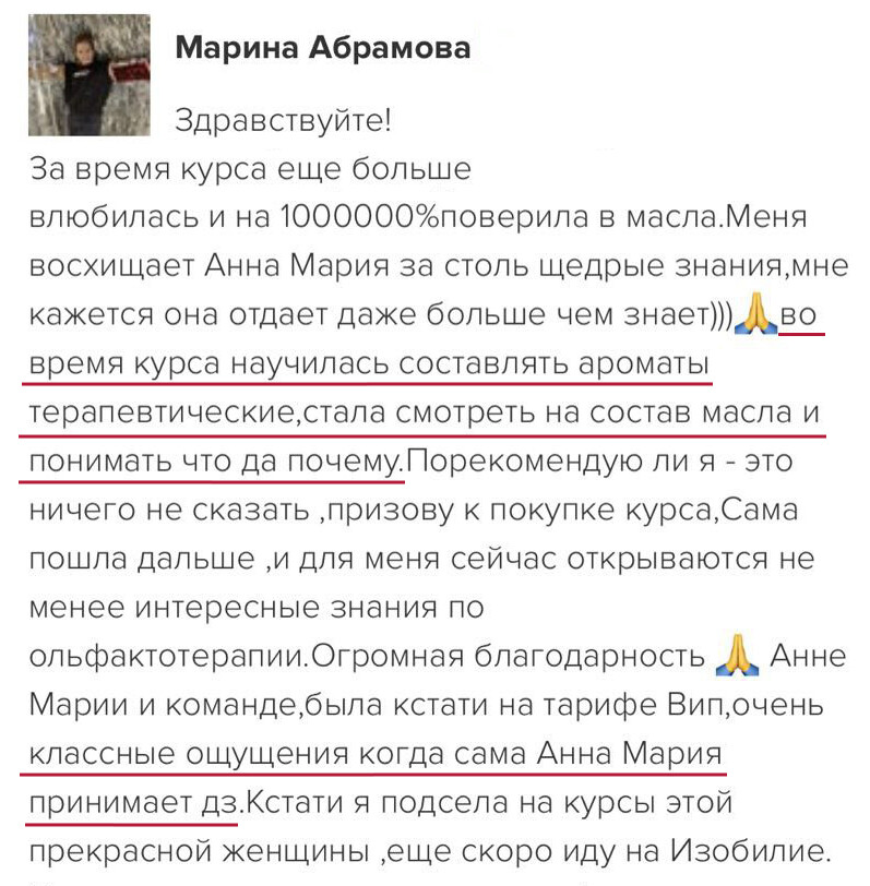 Программы Анны Марии прошли 60 000+ человек и тоже сначала сомневались, было страшно начинать что-то новое. Непрерывное обучение всегда дает результат! Сейчас участники курсов применяют знания, довольны изменениями в своей жизни. На старте всегда кажется, что информации много и сложно разобраться.